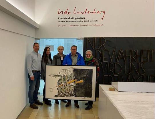 Im Rahmen der Ausstellung „Udo Lindenberg – Kometenhaft panisch“ hat Udo einen signierten Druck aus der Reihe „Gegen Rechte Gewalt“ für das Friedensdorf Oberhausen gespendet. Das Werk wurde anschließend versteigert.